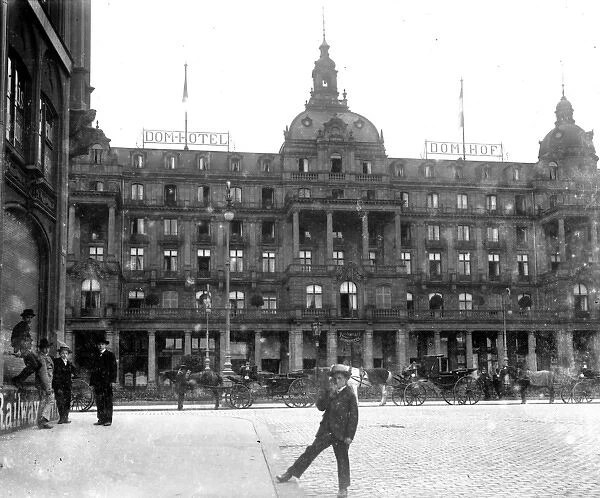 “July 29th, 8:45 a.m. took train for Cologne, arriving at 3 p.m. Weather fine. Stopped at Dom Hof, best place yet. The fine new hotel and new station broke up many associations of two years ago. Visited Cathedral. After dinner took open car rides to see city and went into Cathedral again about 8. Services both times. Singing at last service by all the people most impressive in the dim light!”