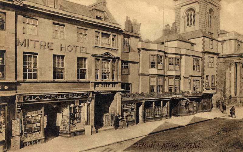 “July 19th, At 10:35 took train to Stradford-on-Avon. Visited Shakespeare’s House and Church where buried &c. Pouring rain all day. Returned to Leamington. At 5:30 left Leamington for Oxford. Arrived about 7:12. Stopped at “The Mitre” – a quaint rambling old inn part of it standing since Chancer’s time. Excellent table and service; fine old silver.”