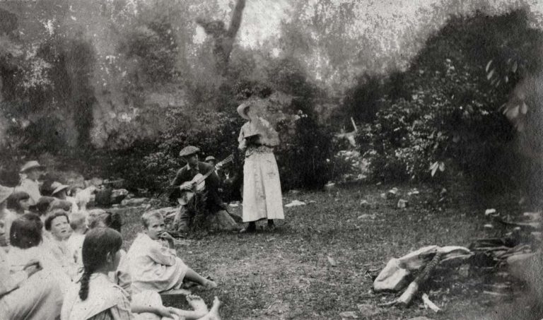 Collaborating with the classically-trained singer Loraine Wyman, he carried out a six-week fieldwork journey in the Appalachian Mountains in Kentucky to collect traditional folk songs from the people living there. Photo from Pine Mountain Settlement Website