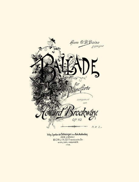 Howard A. Brockway (1870 – 1951) Brockway was born on November 22, 1870, in Brooklyn, New York. He spent five years in Berlin, studying composition under Otis Bardwell Boise and piano under Heinrich Barth. Afterwards he returned to the U.S. and worked as a piano teacher and composer at the Peabody Institute in Baltimore, Maryland, along with the Institute of Musical Art (now the Juilliard School) and the Mannes College of Music, both in New York. Some of his pupils included Eugene Bonner, Eva Clare, and Anne Stratton.