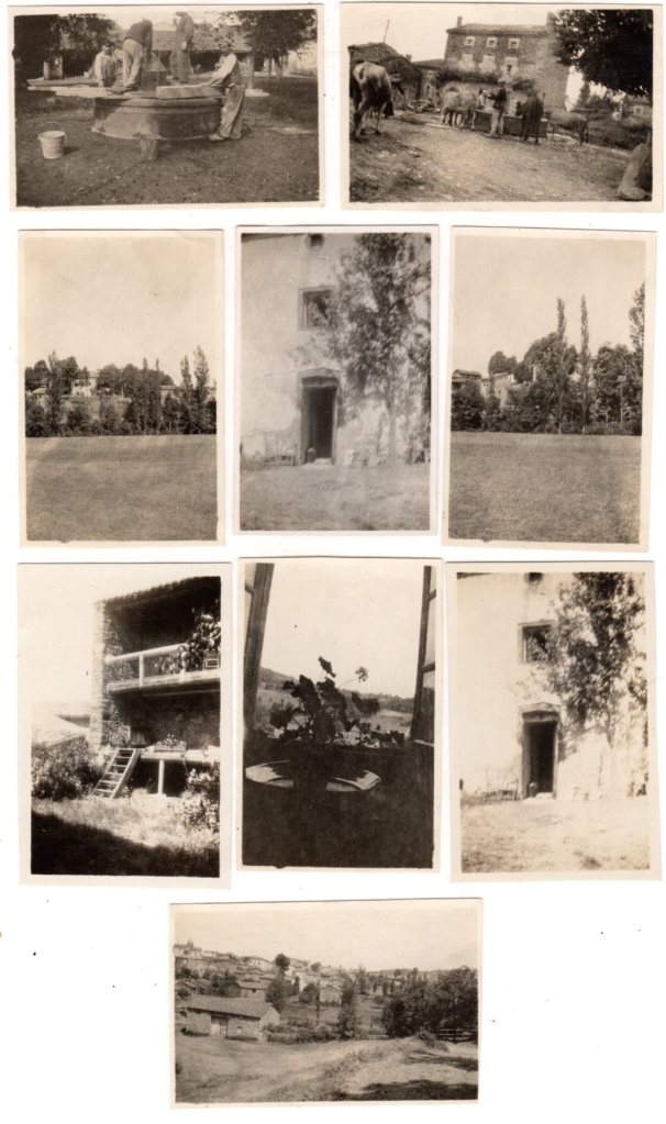 Stopped at Mme Bernard’s house in Paulhaguet on the way. Sleeping in the pavilion. Meals at the school. After supper Clara was introduced to La Niche her little house which Mme Le Verrier brought and fixed over for her. Terrace lighted and tree hung with lighted Jap lantern. House consists of 2 rooms one on top of the other and “sort of a cellar.” Villager peaking to see the fun. From Mons (Monsieur) le Cure to the humblest. House all furnished with Clara’s own things. Linen hemstitched curtains and table cloths made for her!”