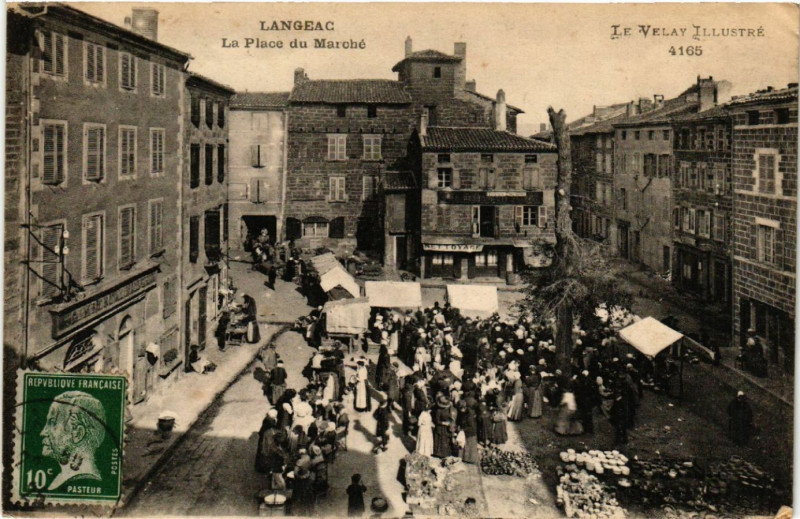 “Thursday, June 23rd, Cloudy, cold. To field of yesterday to finish sketch alone. Early de’jeuner with Miss Wagner and went in truck with her and Pierre to Langeac through St. Genge (?). Market day at Langeac town thronged with peasants. Old woman sang in the Market place. I bought linen and hat. Miss W. many commissaries. Eat cakes at a Patisserie shop and drank beer at a cafe. Real coquotte (she might mean Cocotte which is a French cast iron cooking pot or Dutch oven)there. Appeared from inside! Home for tea at 4-30. Wrote.”