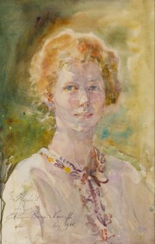 “Monday, July 18th, Fair. Wrote. P.M. Tea on terrace. P.M. Walked alone to further beach. Russians there playing games. Unsuccessful swim. English women and sisters very discontented. Came by boat from Pont Aven for tea. Eve (evening) terrace and cards.”